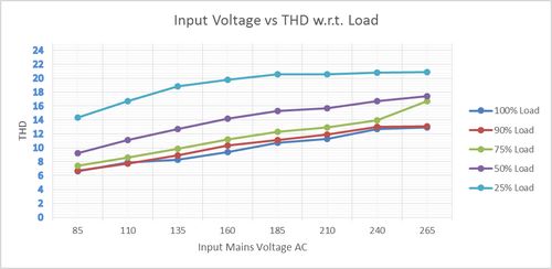 圖6: 在不同負載時輸入電壓 (AC)-總諧波失真曲線