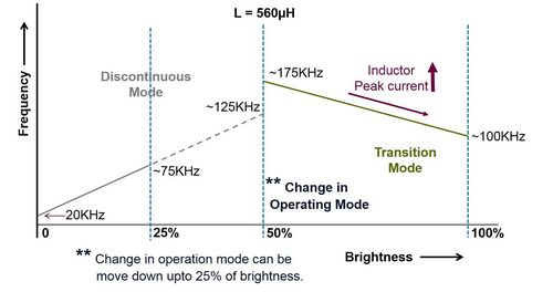 模擬調光是使用MCU內部比較器和數Boreas模轉換器(DAC)外設實現的。按照調光值的大小,借助DAC調整內部比較器正相端的電流閾值(電感峰流)。 在臨界模式下控制電感峰值電流,只能將LED的亮度降到某一定程度。為了處理好低亮度,需要強制兩個DC-DC轉換器進入非連續導通模式,。
