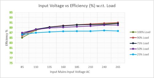 圖4: 在不同負載時輸入電壓 (AC)-能效曲線