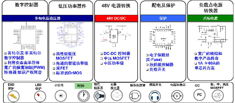 領先的電源半導體供應商安森美半導體致力於推動高能效創新,提供全功率範圍的、高能效、高功率密度的雲電源方案,包括AC-DC轉換、多相轉換、負載點電源、熱插拔保護、時鐘等矽方案和下一代半導體碳化矽(SiC)、氮化鎵(GaN),支持基站、企業伺服器或數據中心、雲計算等雲基礎設施。