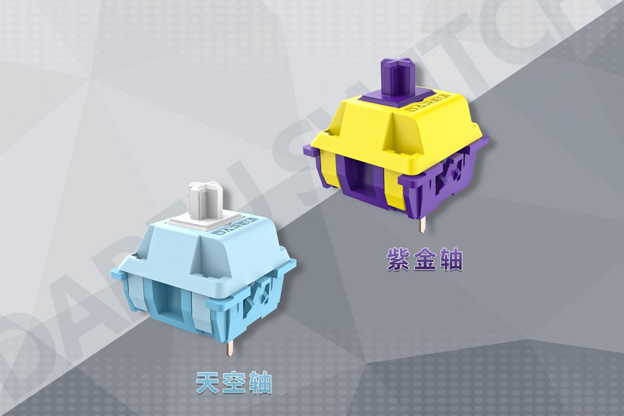 搭載達爾優定制天空軸(BLUE SKY SWITCH)與紫金軸(VIOLET GOLD SWITCH),線性軸手感與二段式段落軸手感隨你選擇。達爾優定制軸採用高強度合金彈簧與鍍金觸點彈片,讓鍵軸手感更穩定,軸體壽命更長。