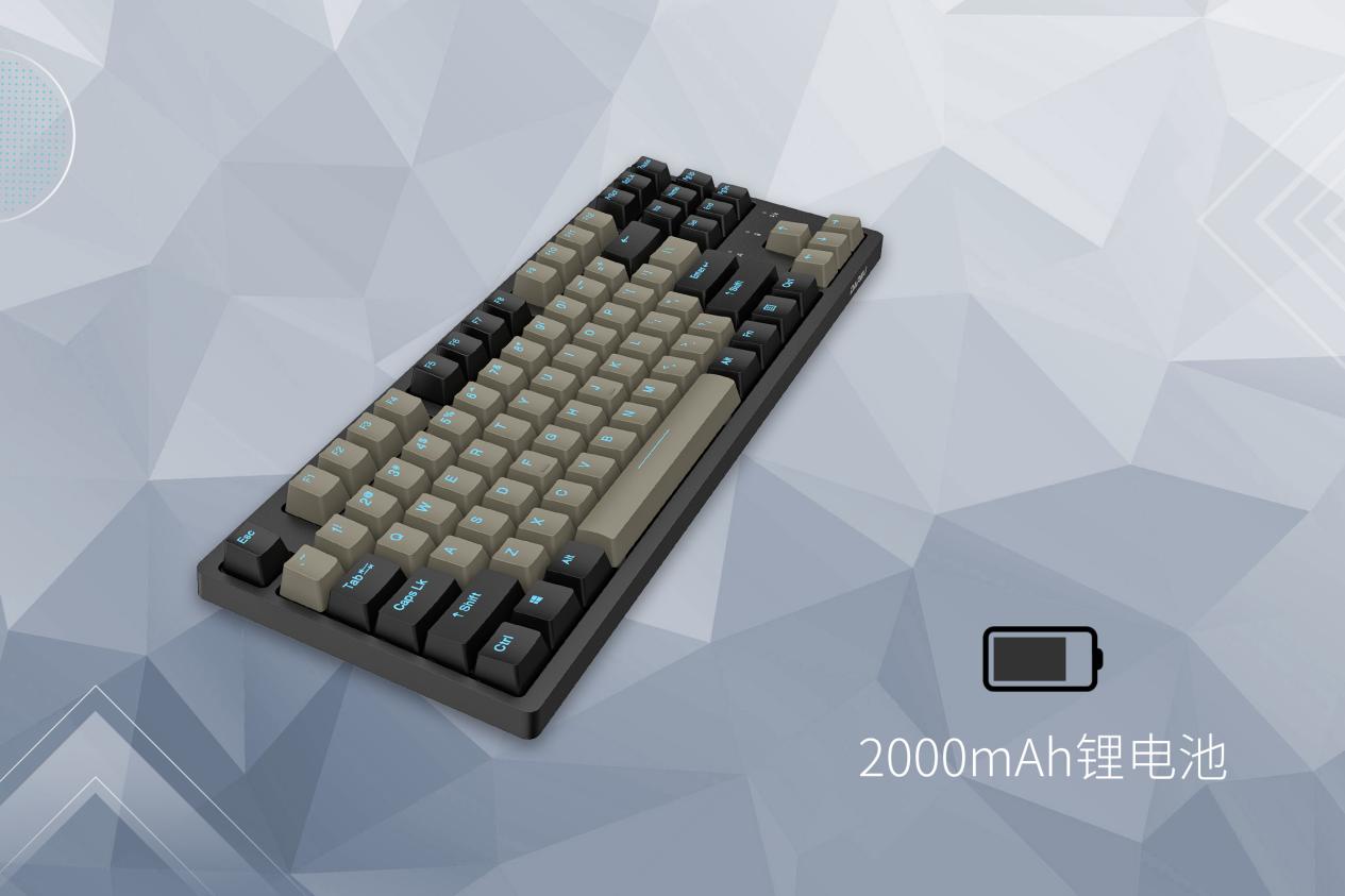 鍵盤內置2000mAh鋰電池,且支持邊充電邊使用。搭配低功耗晶片和節能省電技術,可以讓鍵盤在關燈狀態連續使用約25天,即使燈光全開也可以連續暢玩約3天,更簡單更便捷。
