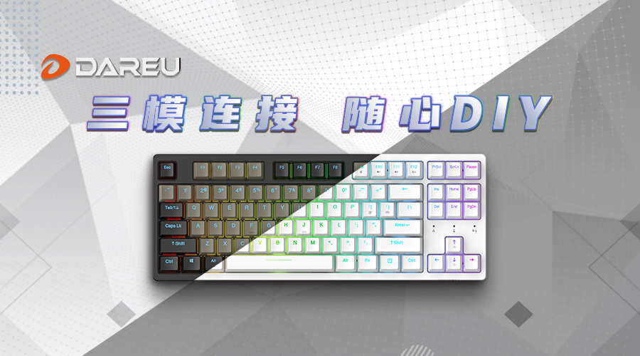 DAREU-A87全插拔定制軸三模版機械鍵盤擁有簡約時尚的極晝白與幕夜黑雙色可選,搭配多種燈光模式的RGB全彩背光設計,給你極強的視覺性與可玩性。鍵盤可使用USB有線連接、2.4G無線連接和BT藍牙三種連接方式,支持連接多臺不同移動設備,可快捷切換到不同的使用場景,有效相容Win/Mac等系統設備,滿足不同平臺用戶需求。