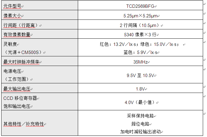 “TCD2569BFG”通過減小像素陣列(紅—綠、綠—藍)之間的間隔,減輕套色不准現象,提供更高質量圖像。內置的採樣保持電路可延長感測器的視頻輸出信號週期,並簡化用於辦公室自動化設備和工業設備的高速掃描器的設計工作。此外,CCD移位寄存器提供4V飽和輸出電壓,可減輕光暈。削波功能可確保輸出信號電壓保持在1.8V以下,防止輸出信號電壓超過模擬前端IC的最大輸入電壓範圍。