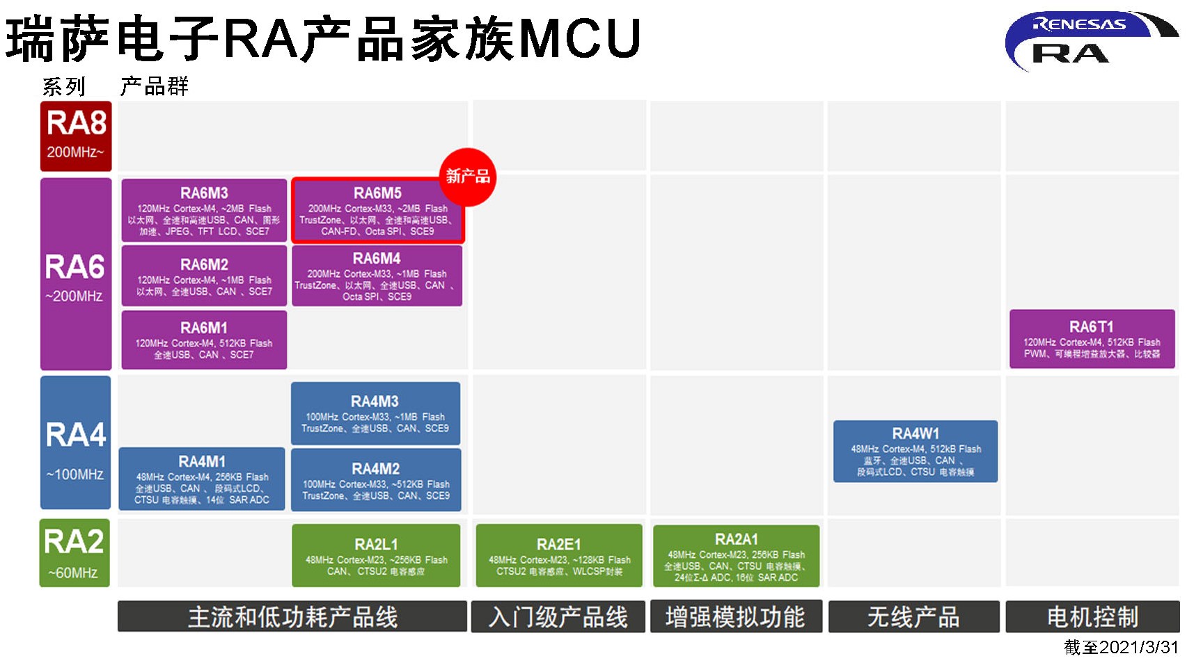 全球半導體解決方案供應商瑞薩電子集團近日宣佈,新增20款RA6M5群微控制器(MCU),擴展RA6系列MCU,完善主流產品線。新產品提供豐富的通信功能選項、大容量片上記憶體和瑞薩卓越的安全功能,幫助客戶開發創新的物聯網(IoT)設計。