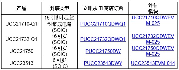 更多瞭解有關TI UCC21710-Q1、UCC21732-Q1、UCC21750和UCC23513柵極驅動器的資訊