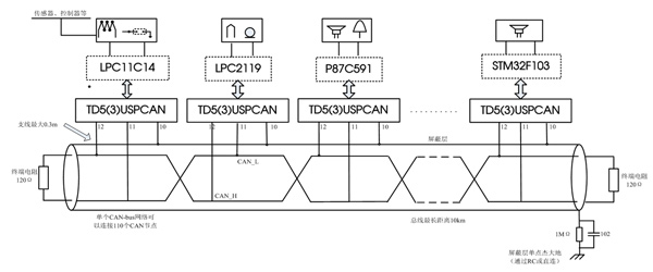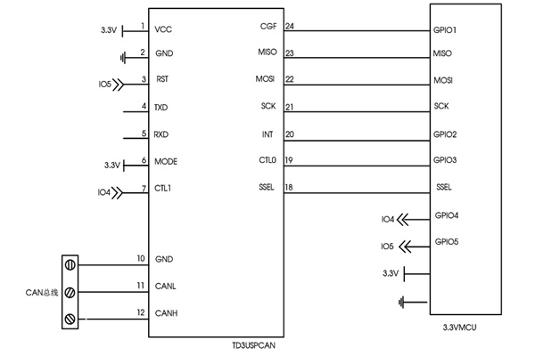 UART/SPI轉CAN協議轉換模組——TD5(3)USPCAN