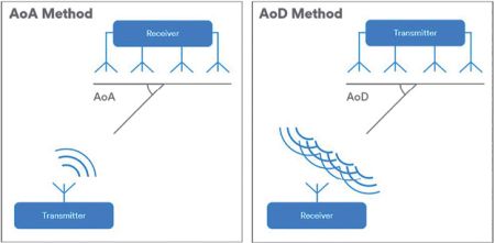 已經有藍牙接收器用信號強度來估算到藍牙發射器的距離。5.1規範提供了兩種更加精確定位的方法,代價是使用多個發射/接收天線。要實現到達角度(AoA)方法,接收器必須至少有兩個天線(最小間距為6.2釐米),而發射器可以只有一個天線。通過AoA方法,接收器使用接收到的多個信號來計算出信號源的角度。類似地,離開角度(AoD)方法需要發射器具有至少兩個天線。接收器可以只有一個天線,接收多個信號並計算出信號源的角度。
