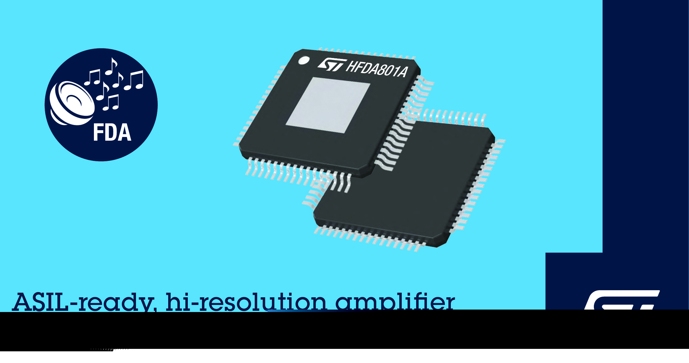 意法半導體新推出的HFDA801A是一款高解析度音頻放大器晶片,專門為尺寸緊湊、追求成本效益的車用音響系統設計。