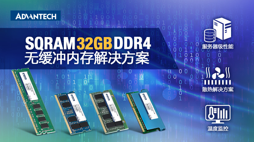 2019 年 4 月,深圳 - 全球嵌入式市場閃存和記憶體解決方案提供商研華科技 (2395.TW),宣佈推出目前業界最全面的 32GB DDR4 無緩衝 DIMM 記憶體產品線。研華 SQRAM 提供各種 DIMM類型的獨立 32GB DRAM 模組,包括 SODIMM、UDIMM、ECC DIMM 和強固耐用的 Rugged DIMM;以上模組均支持寬溫操作,非常適用於網路和軍事等應用中的高性能計算。