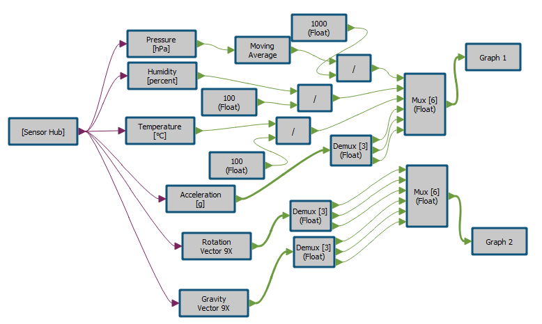 簡而言之,AlgoBuilder提出一個零行代碼快速開發原型的方法,使客戶能夠在他們的特定任務中評估我們的感測器。在點幾下滑鼠後,用戶可從ST Nucleo開發板和X-Nucleo-IKS01A2擴展板直觀地提取並導出許多參數,例如,加速度、角速率、FMD磁場、溫度、濕度、壓力、四元數、FFT、運動強度指數,還能取用感測器數據並在特定任務中進行評估,無需花費精力和時間編寫固件代碼,這對開發者而言極其重要。